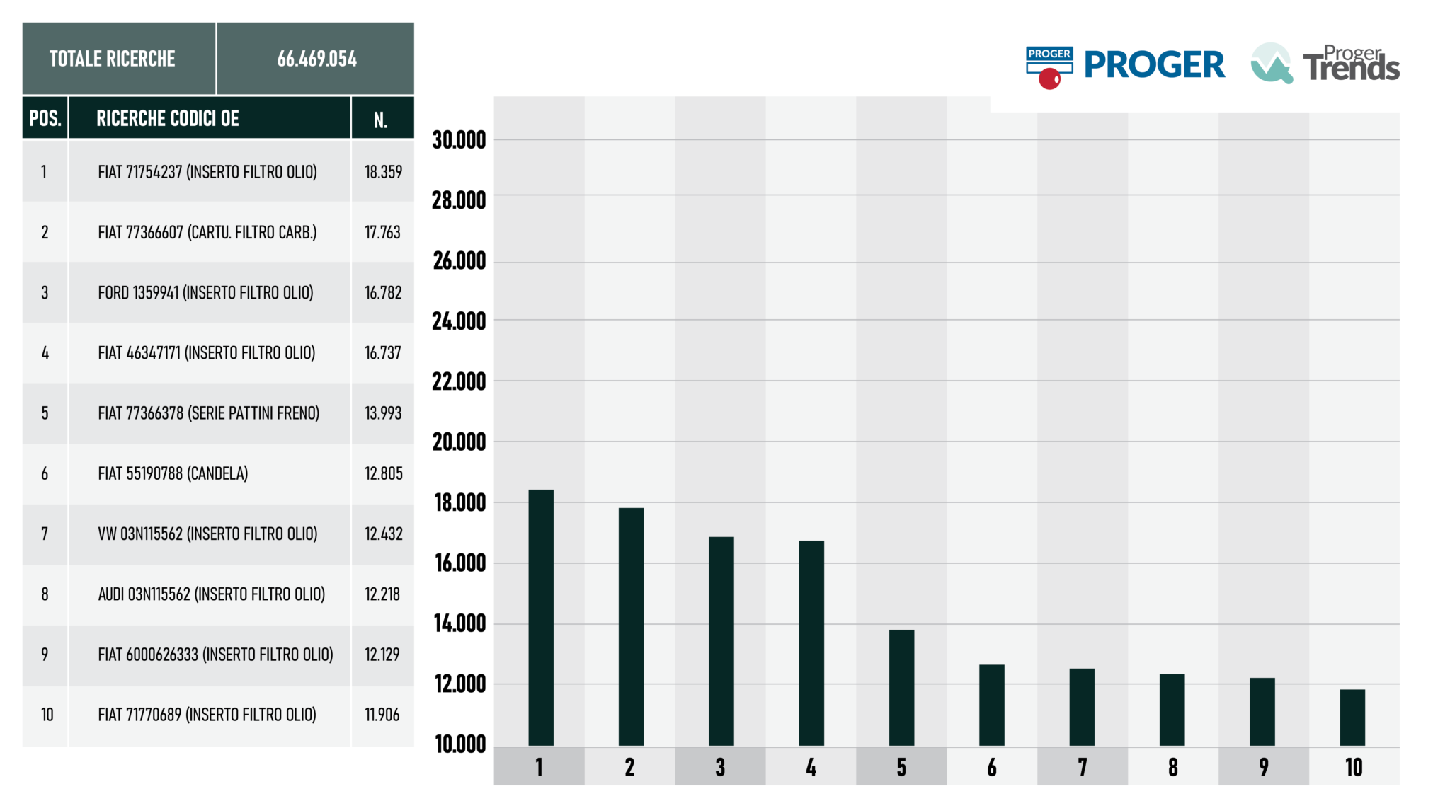 L’analisi dell’Ufficio Studi Proger Trends sui Componenti Original Equipment (OE), Aftermarket (AM) e sui modelli di Auto più ricercati.